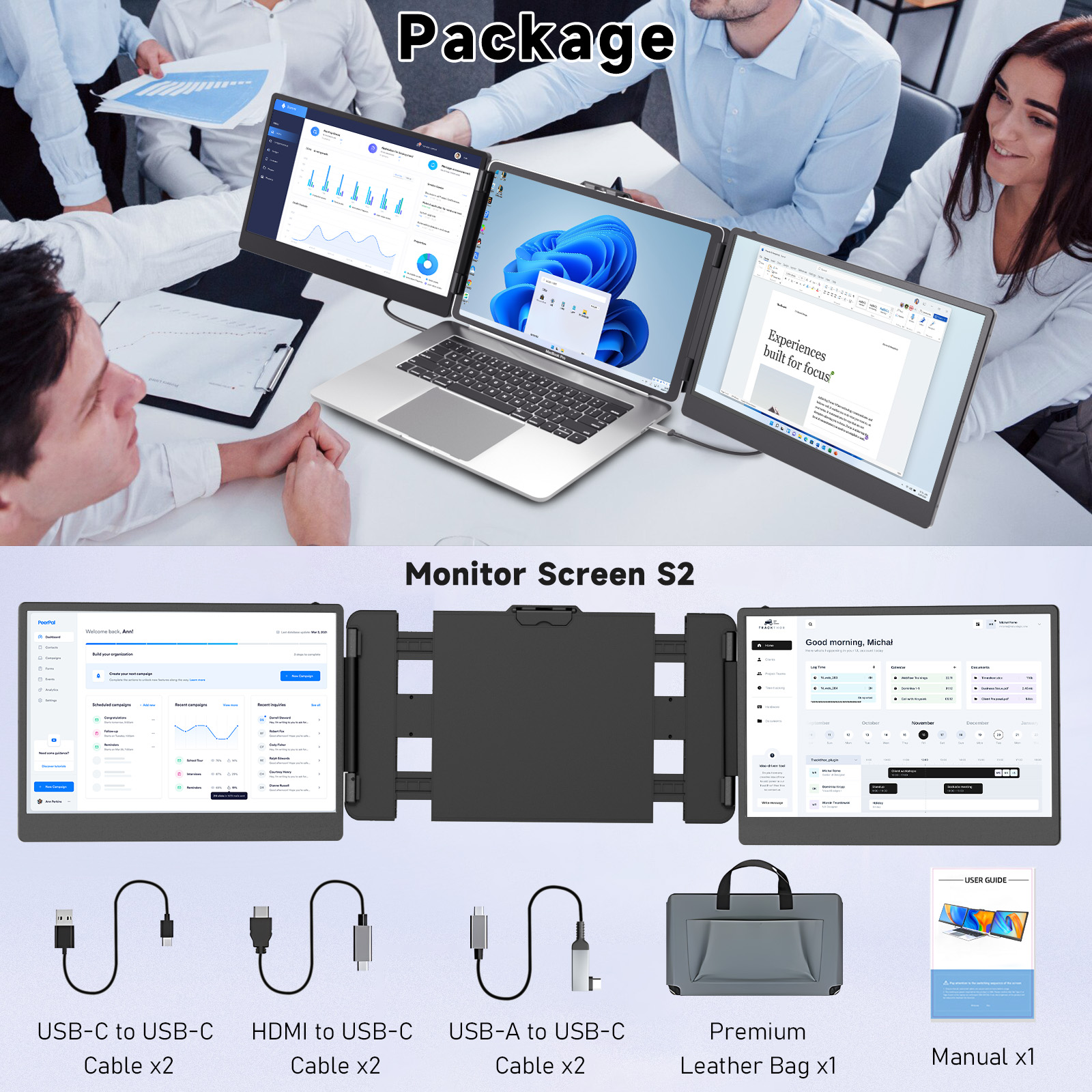 OEM S2 Triple Portable Laptop Screen Extender Monitor 14 Inch FHD 1080P IPS Dual Screen Portable Monitor Extension for Laptop